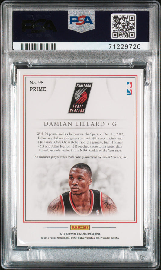 2012-13 Panini Crusade Quest Damian Lillard Prime Jersey PATCH Rookie 2/25 PSA 9