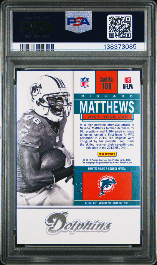2012 Panini Contenders Rishard Matthews #180 Auto Championship Ticket #1/1 PSA 9