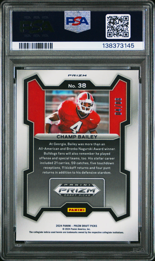 2024 Panini Prizm Draft Picks Champ Bailey Green Shimmer #4/8 (JERSEY #) PSA 9