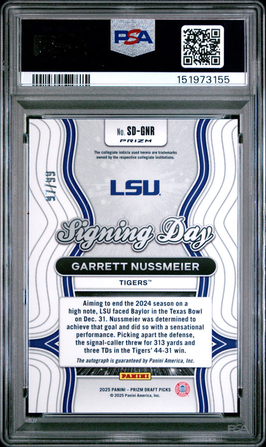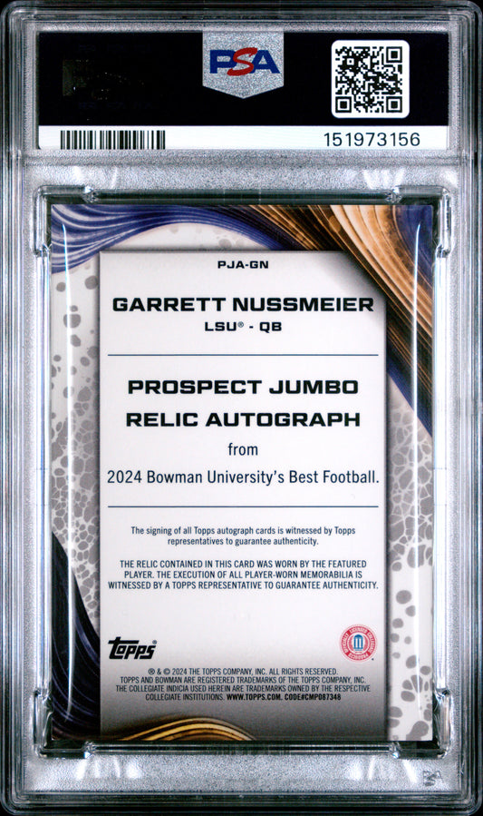 2024 Bowman University Prospect Jumbo Relic Auto Garrett Nussmeier /99 PSA 9