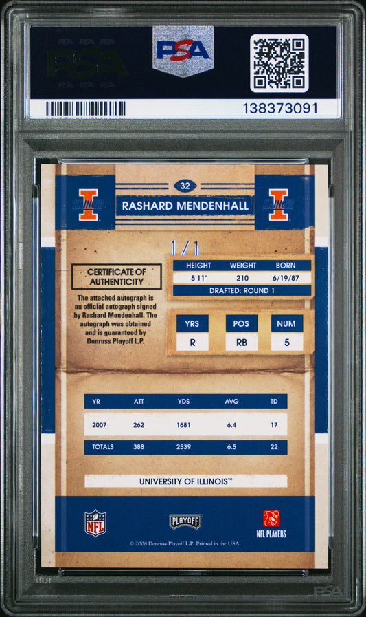 2008 Playoff Contenders Rashard Mendenhall Championship Ticket #1/1 AUTO PSA 7