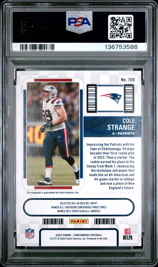 2022 Contenders Cole Strange #158 Autograph Cracked Ice 01/22 PSA 9 pop 2