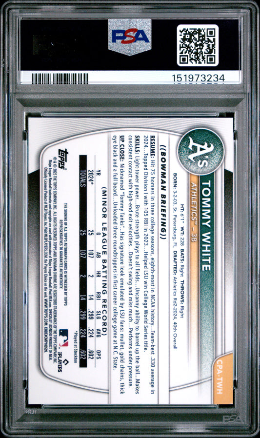 2025 Bowman Chrome Prospect Auto Tommy White #CPATWH Hta Choice 002/150 PSA 10