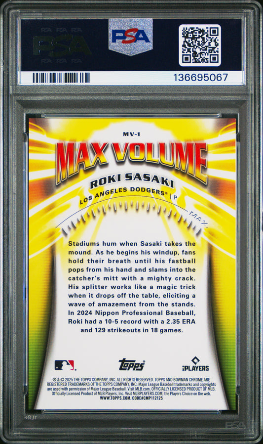 2025 Bowman Chrome Max Volume Roki Sasaki Gold Refractor 09/50 PSA 10 pop 3