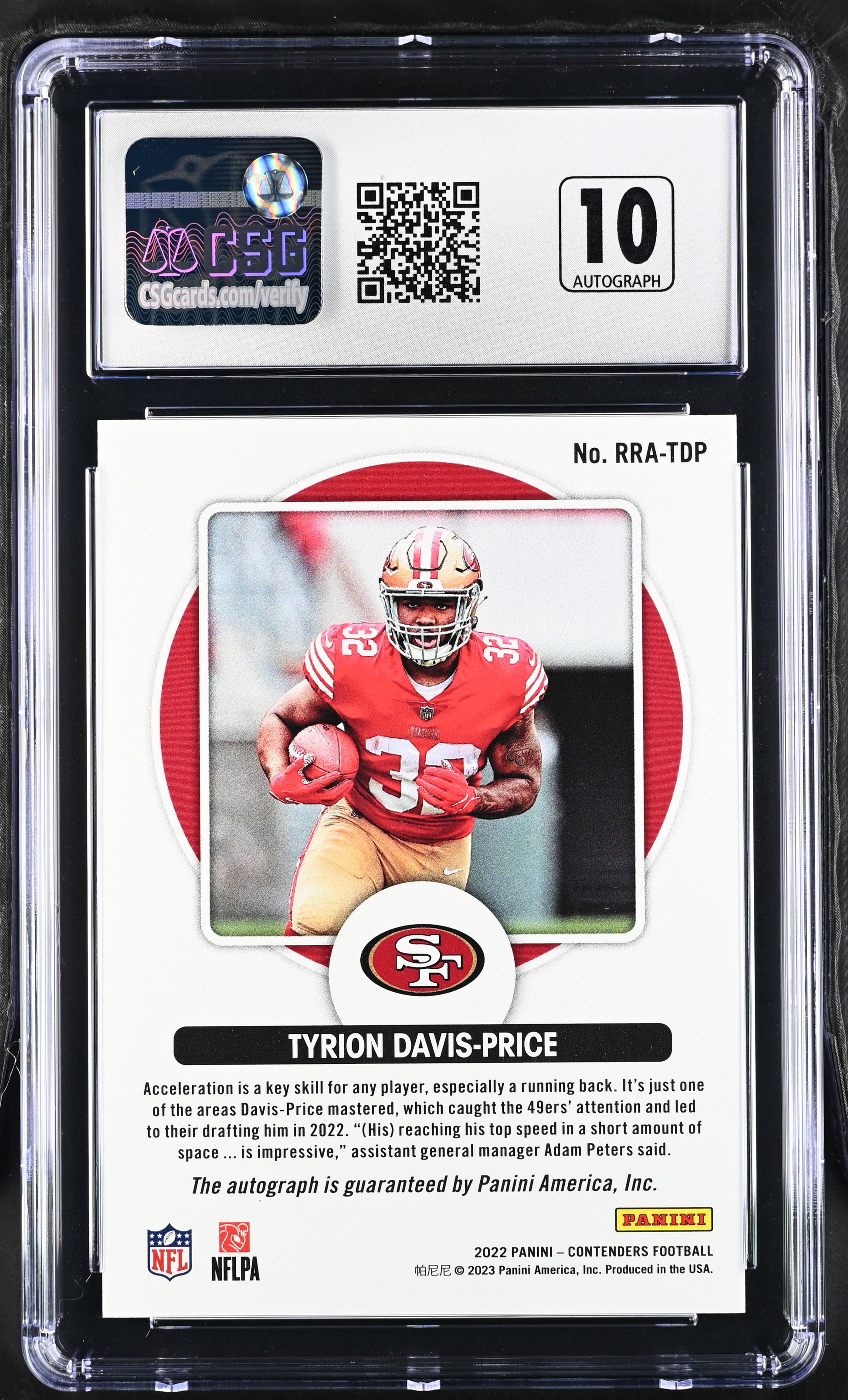 2022 Contenders Tyrion Davis-Price Gold Rookie Roundup Auto CGC 9.5 POP 1