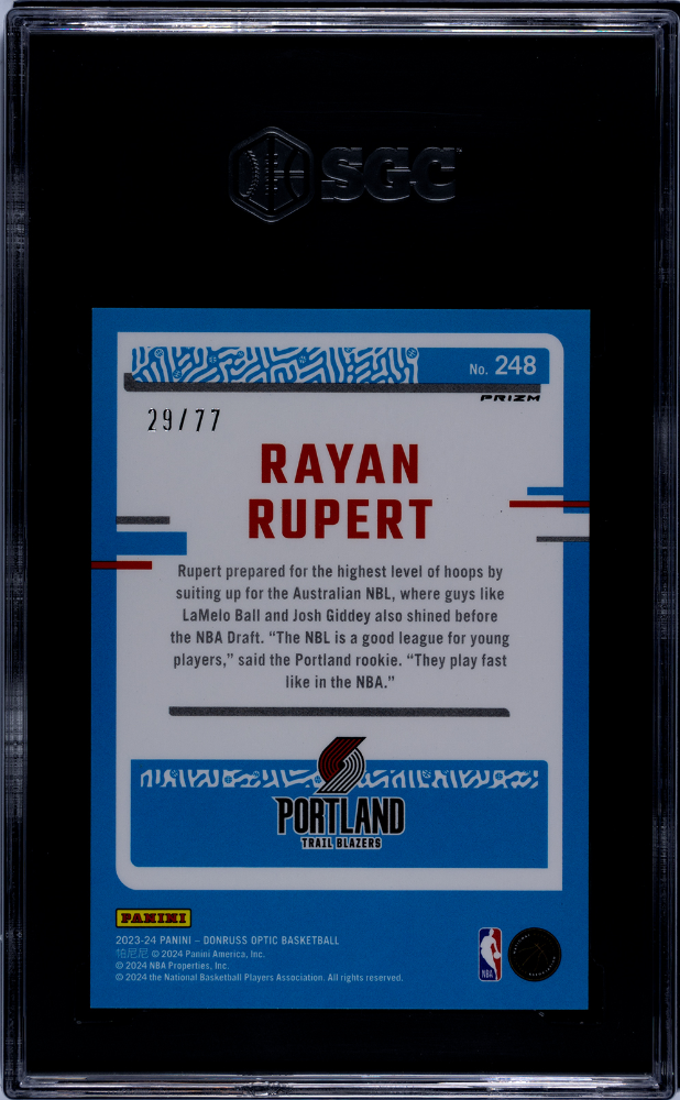 2023-24 Donruss Optic Rayan Rupert #248 Green Glitter Prizm SGC 9.5 /77 pop 1