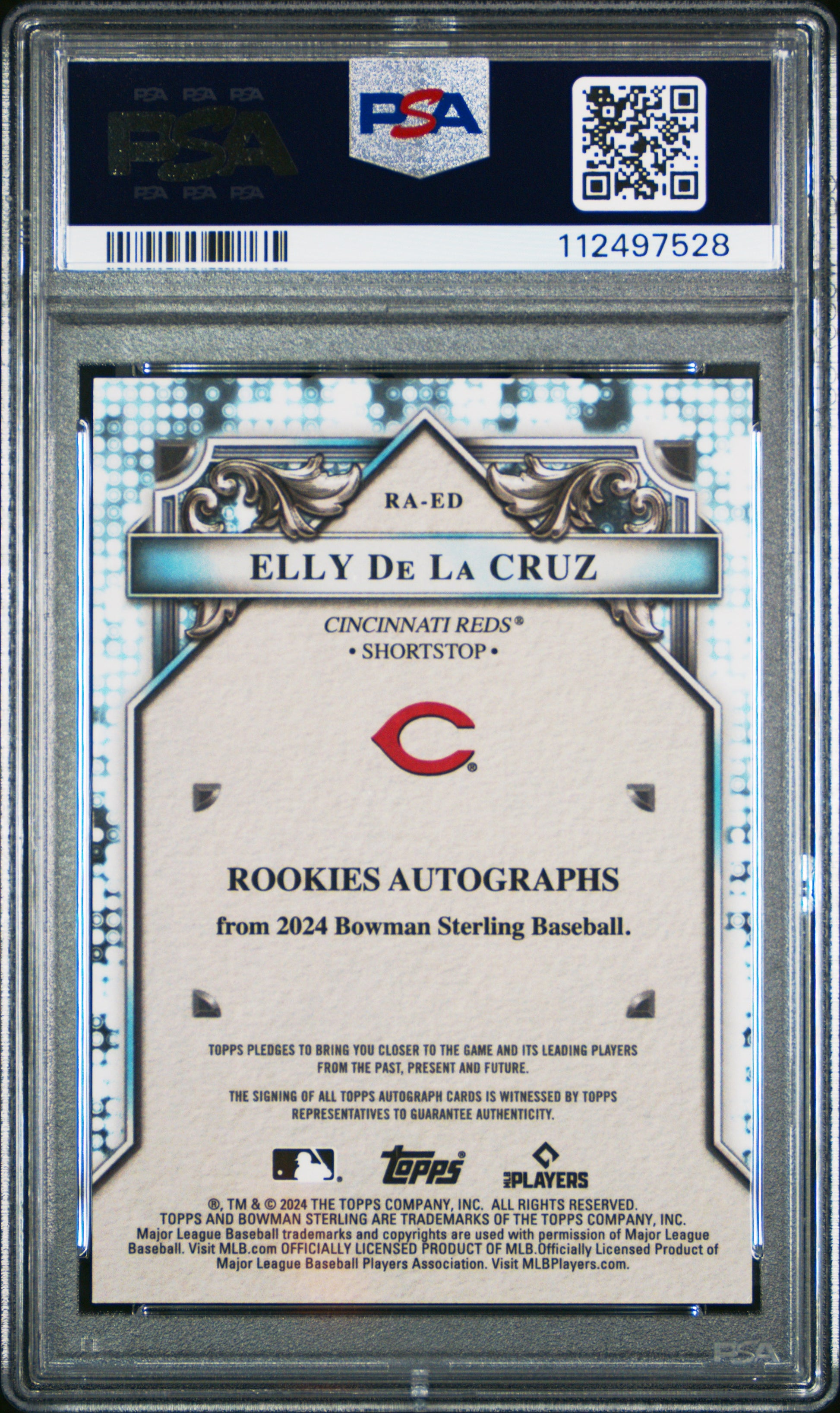 You are purchasing a Elly De La Cruz 2024 Bowman Sterling Rookies Autographs Rose Gold Ref 06/15 PSA 9. You will receive the exact item in the photographs. Thank you, Omaha Sports Cards. Listed With Mascot.